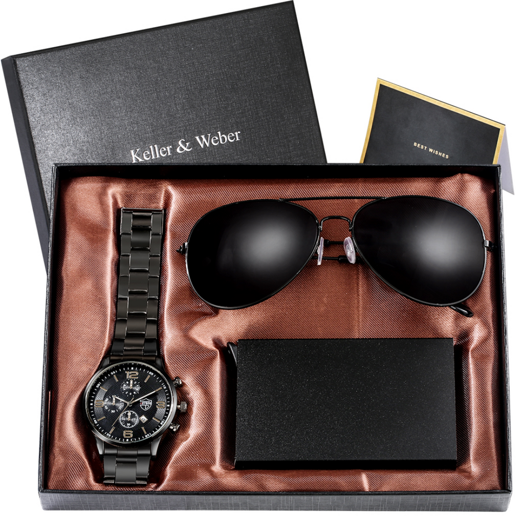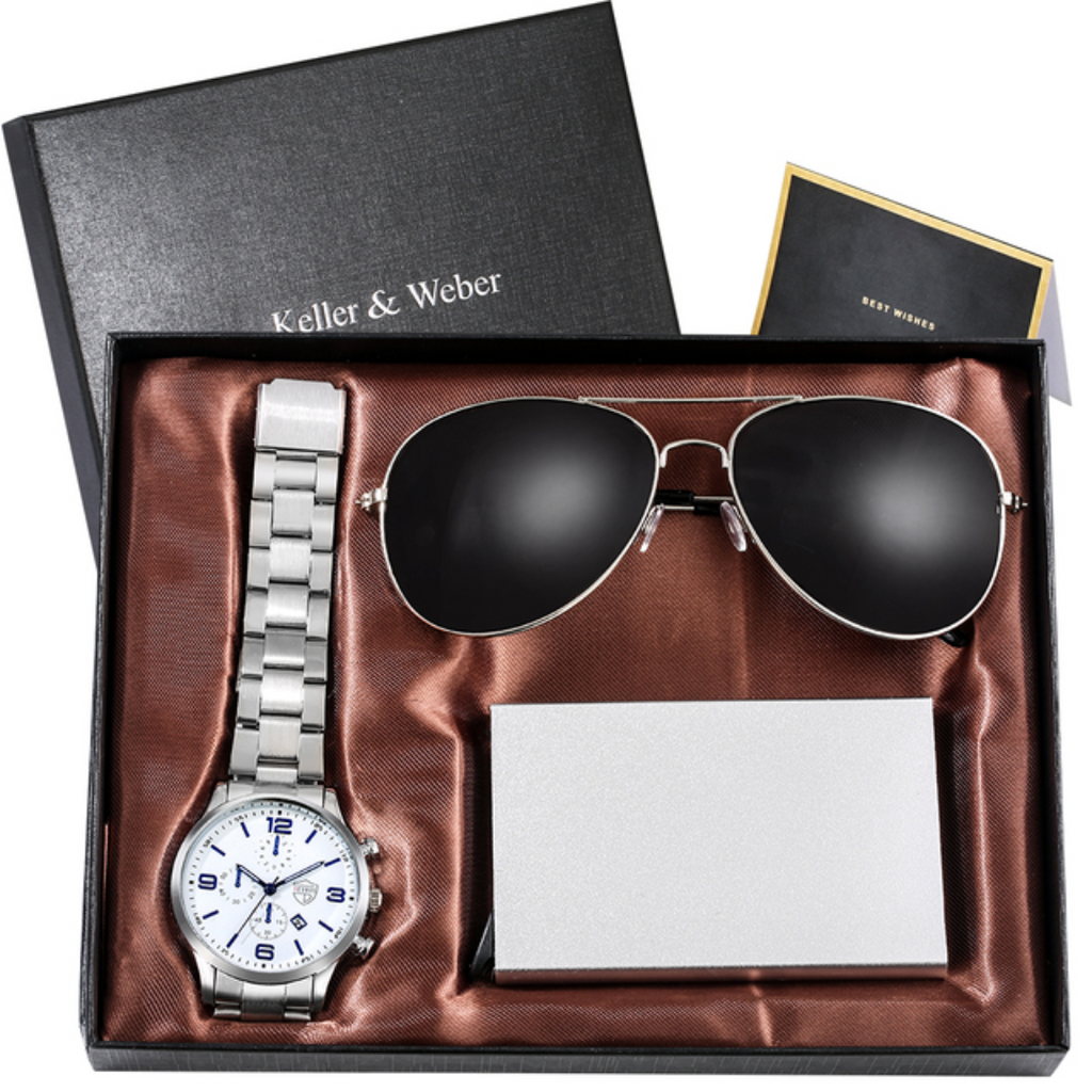 Um kit que conta com um relógio e óculos aviador, une detalhes minimalistas com um aspecto moderno, incorporando um estilo único perfeito para quem gosta de se vestir bem. Um super relógio casual, para você que não abre mão de um acessório a prova d'água, contra poeira e resquícios.