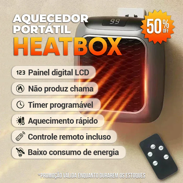 Com controle remoto, timer inteligente e sistema de segurança contra superaquecimento, o HeatBox é a solução perfeita para dias frios, sem sustos na conta de luz.