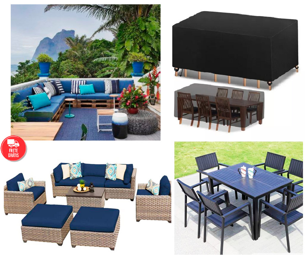 • Tecido de poliéster revestido com PVC impermeável, protege os móveis da erosão da chuva.