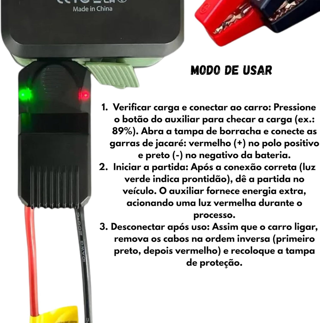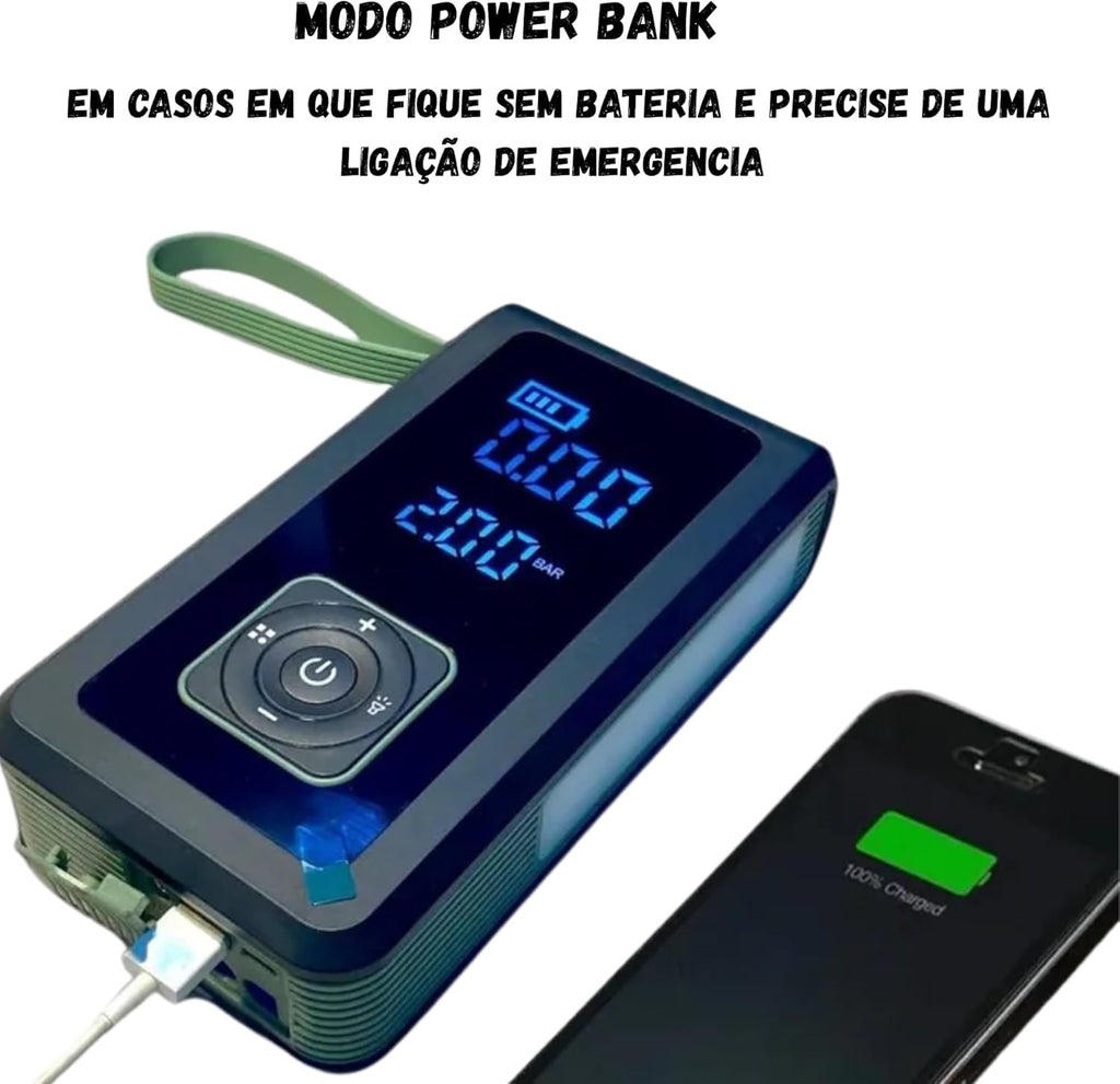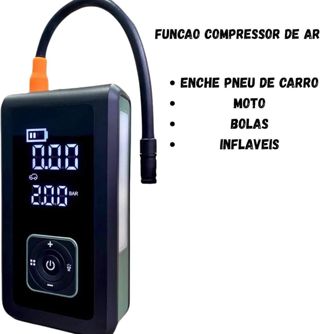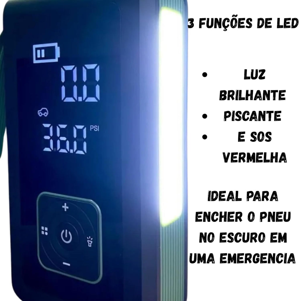CARGA DE BATERIA + BOMBA DE AR PORTÁTIL + LANTERNA [3 em 1]