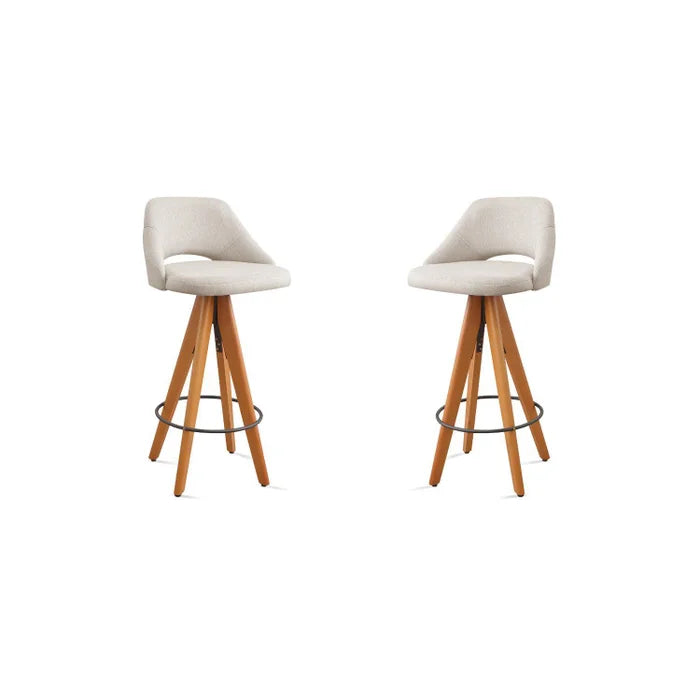 Kit 2 Banquetas Giratórias Estofadas com Encosto Nude .A principal vantagem da banqueta é o conforto que ela oferece por ser estofada, proporcionando uma superfície de assento muito agradável. Além disso, possui base giratória em madeira, isso é especialmente útil em espaços onde você precisa alcançar diferentes áreas sem sair do assento. Pode ser usada em uma variedade de configurações, desde cozinhas e bares domésticos até áreas de espera em escritórios ou estabelecimentos comerciais. Possui estrutura em mdf prensado, chapas de ferro interligando o assento com o encosto e travamento da estrutura por grampos fixados com grampeadores pneumáticos. Espuma D28 soft no assento e no encosto.